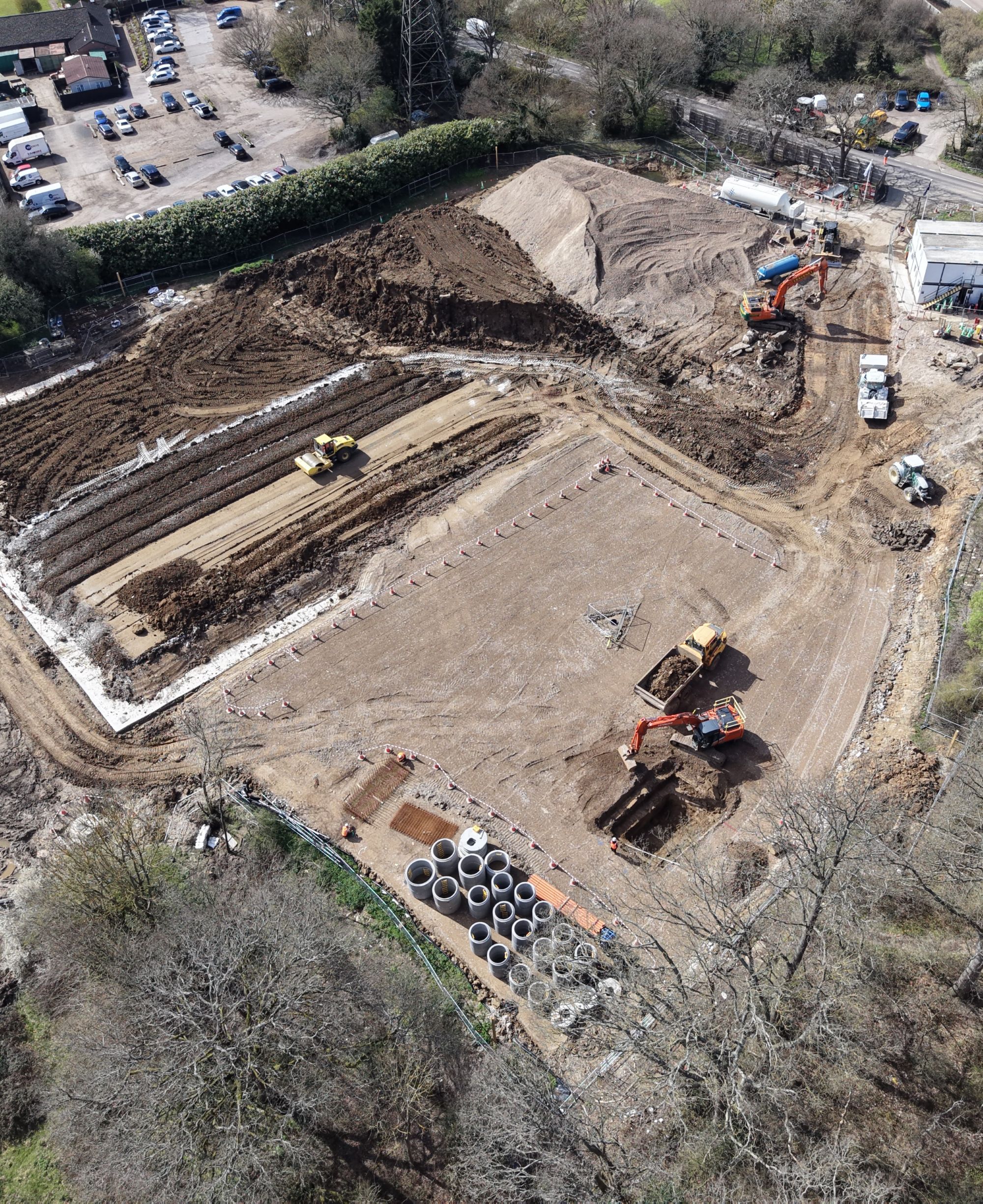 Proactive management and early engagement with environmental specialists ensured a far more sustainable outcome, rather than removing the full hotspot which would have resulted in extensive lorry movements, greater landfill requirements and considerable cost. The team carefully assessed the material and determined that only 80m3 required removal, with the remainder safely encapsulated beneath engineered hardstanding and validated under the final Verification Report.